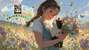 好奇心いっぱいの子猫が花畑で出会う “優しいことば” をモチーフにした、44枚のアファメーションカードです。